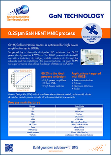 The foundry flow, layout rules and specifications related to GaN are also addressed. A lecture is given on process qualification and the space level. All available back-end activities (on wafer test, dicing and picking) are discussed prior to a BE tour. The training is completed with a discussion on different packaging solutions developed at UMS.
